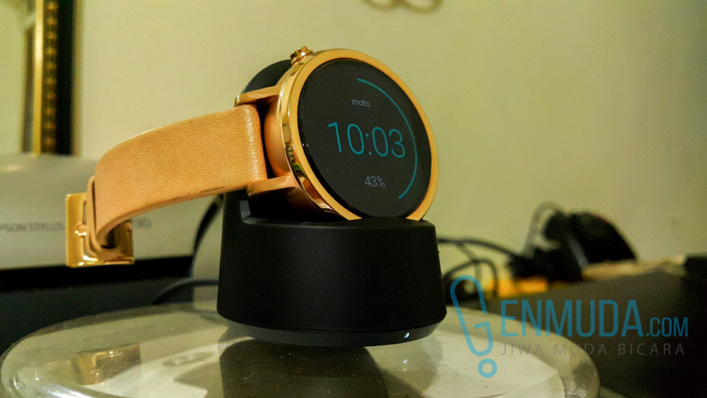 Unit yang Genmuda.com review adalah versi kecil dengan ukuran 42 mm. Buat kamu yang pengen ukuran lebih besar, Motorola menyediakan varian berukuran 46 mm. Bahkan kamu juga bisa buat desain jam sesuai dengan keinginan kamu melalui website Moto Maker mereka. Sayangnya fitur yang satu ini belum bisa kamu cobain di Indonesia karena hanya terbatas di beberapa negara saja.