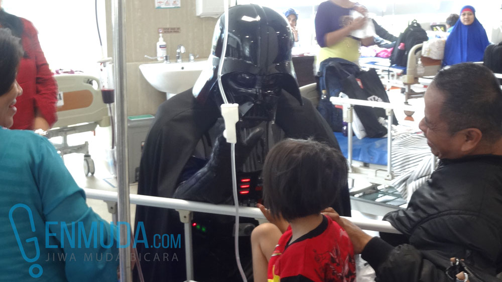 “Biasanya dokter yang menghibur pasien, sekarang dokter dari luar angkasa yang akan menghibur para pasien.” diselingi oleh tawa para anak-anak yang udah engga sabaran nungguin Darth Vader cs.